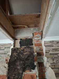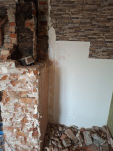 In een woning in Enschede moesten we 2x een rookkanaal verwijderen. De schoorsteen op het dak was al verwijderd.